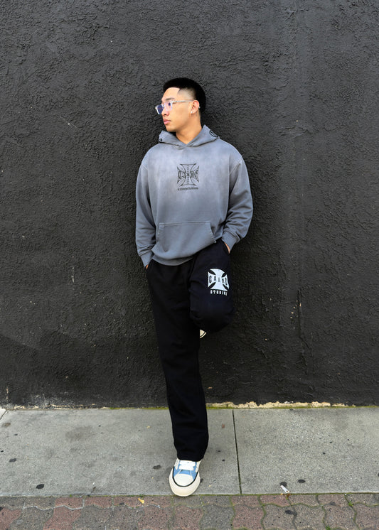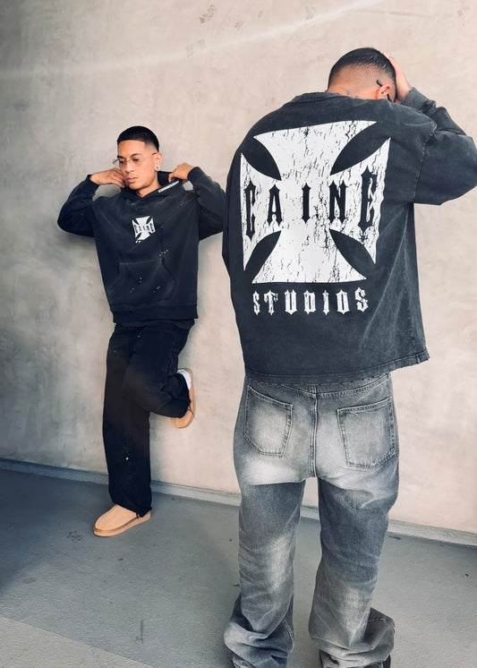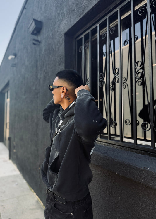 “CHOPPA” HOODIE IN DISTRESSED, FADED BLACK