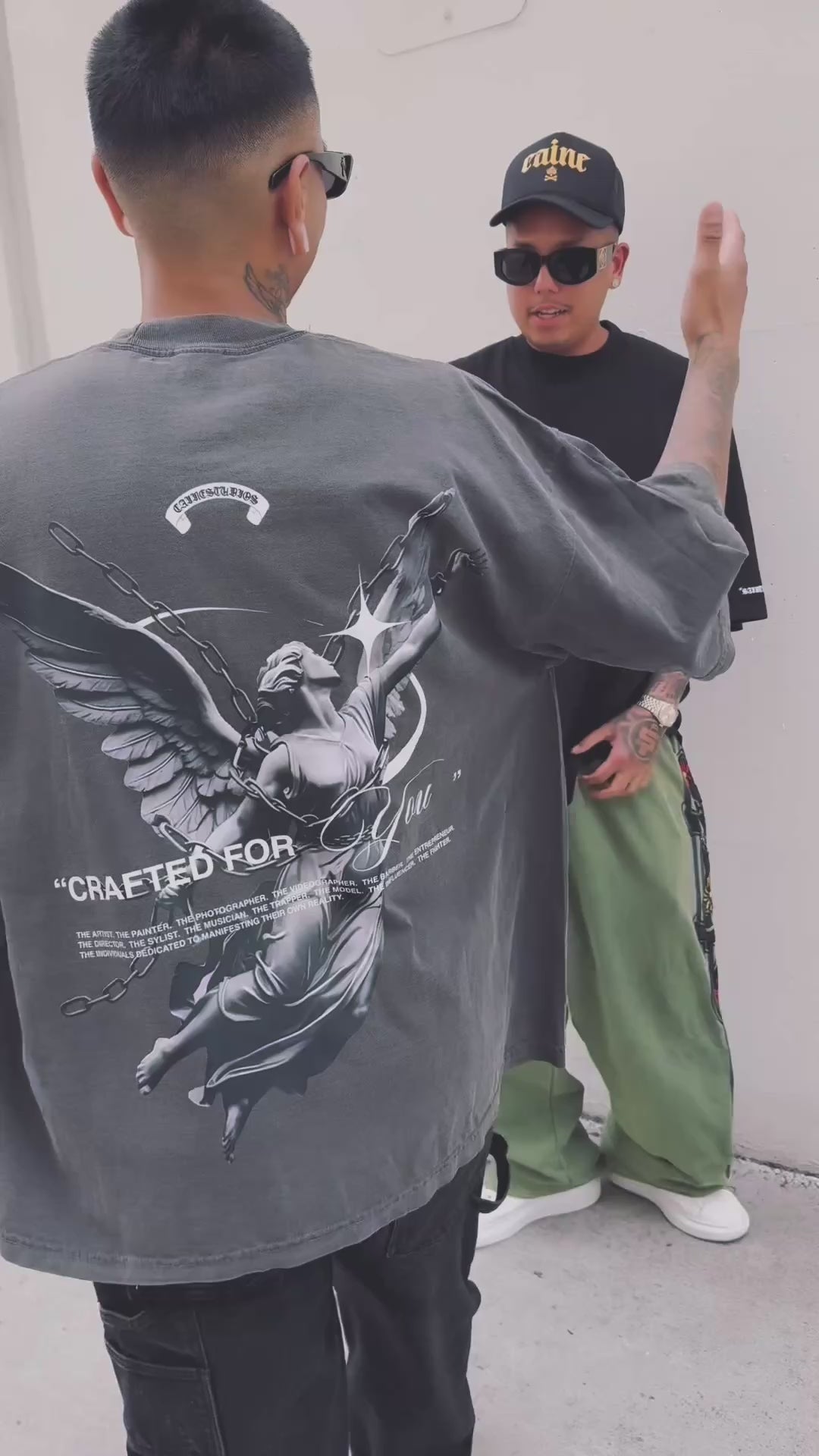 • TEES FEATURE NEW SILK "CAINESTUDIOS" WOVEN LABELS + MATTE BLACK BAG
