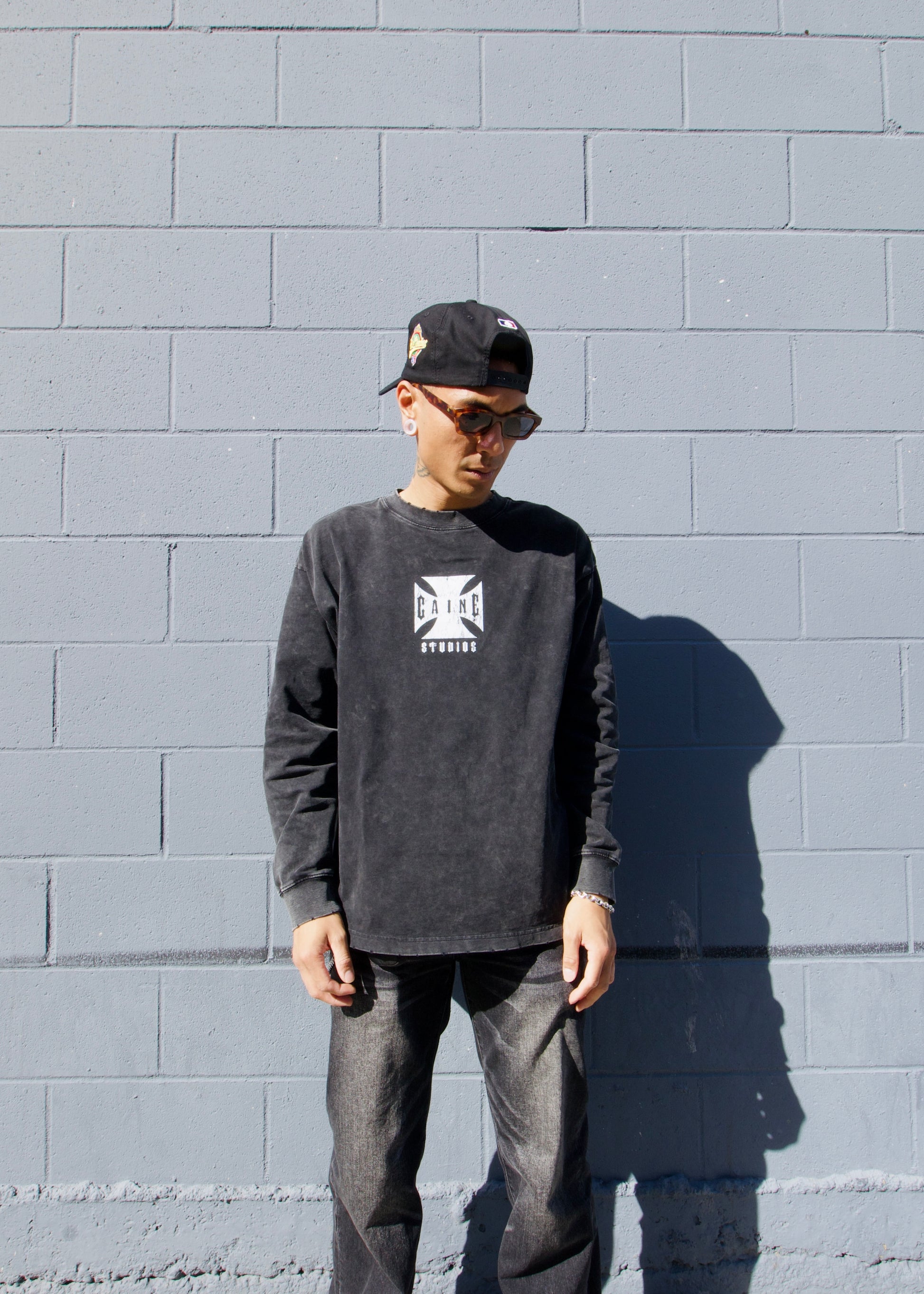 • Black canvas, unstructured, mid-profile, 5-panel adjustable snapback hat.